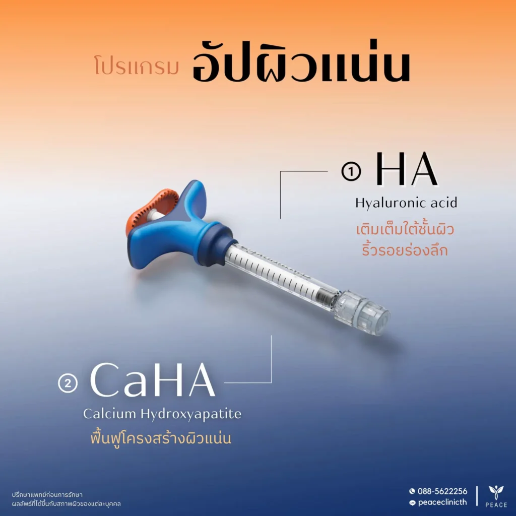 HA ช่วยเติมวอลุ่มและเพิ่มความชุ่มชื้นให้ผิว ขณะที่ CaHA ทำหน้าที่กระตุ้นกระบวนการสร้างคอลลาเจนตามธรรมชาติ จึงช่วยให้ผิวดูแน่น แข็งแรง และคงผลลัพธ์ได้นานกว่าโปรแกรมฟิลเลอร์ทั่วไป