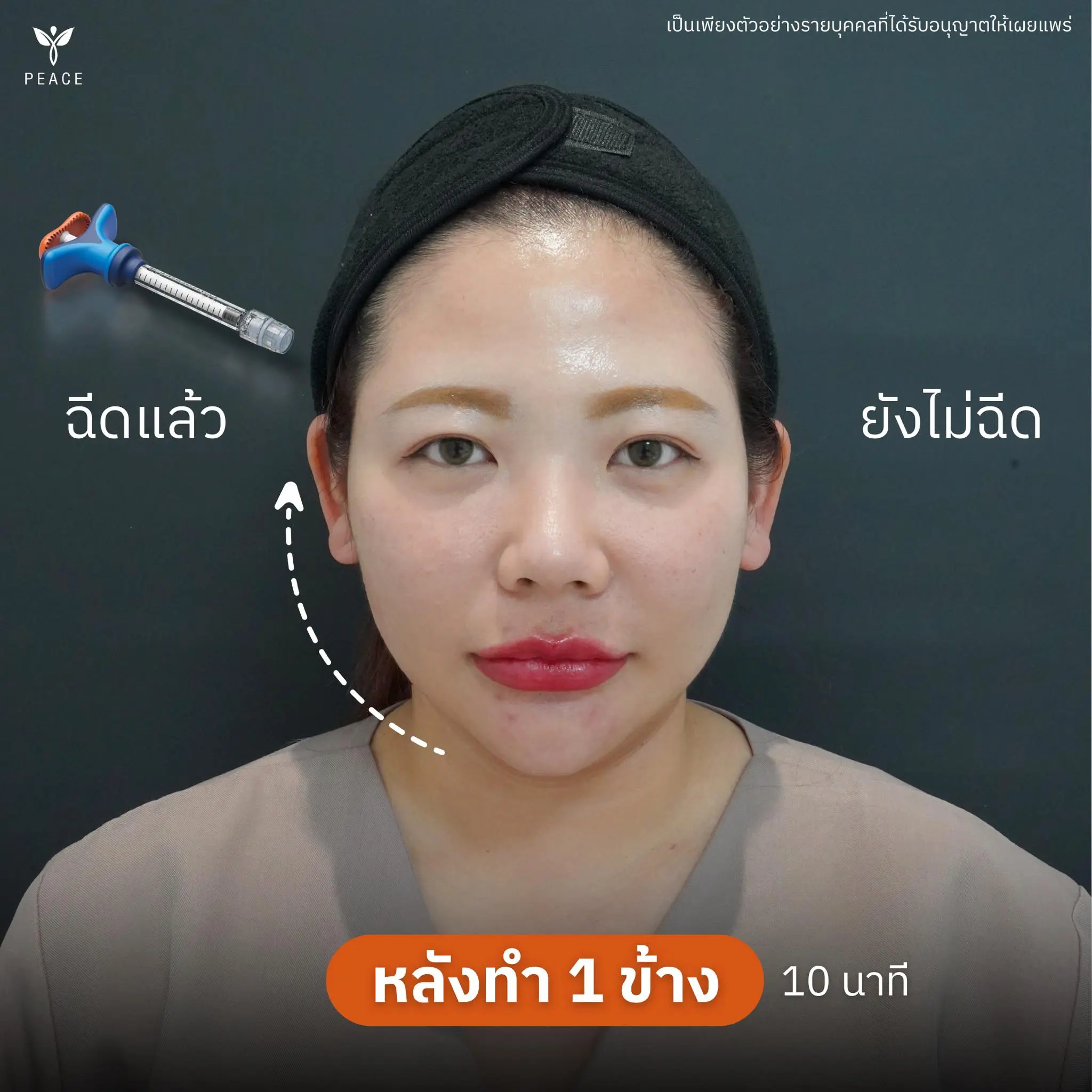 หลังฉีดจะสังเกตได้ว่าผิวดูอิ่มขึ้นจากคุณสมบัติของ HA ที่ช่วยทดแทนปริมาตรในบริเวณที่ผิวเริ่มบางหรือยุบตัว เช่น ร่องแก้ม ร่องน้ำหมาก หรือบริเวณที่ขาดความอิ่มฟู ทำให้ภาพรวมของใบหน้าดูสดใสขึ้น