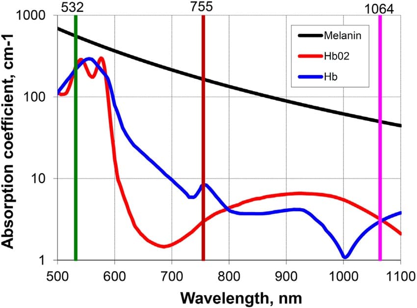 ● 755 นาโนเมตร : เจาะจงเม็ดสีเมลานินได้ดี เหมาะกับฝ้า กระ และจุดด่างดำ